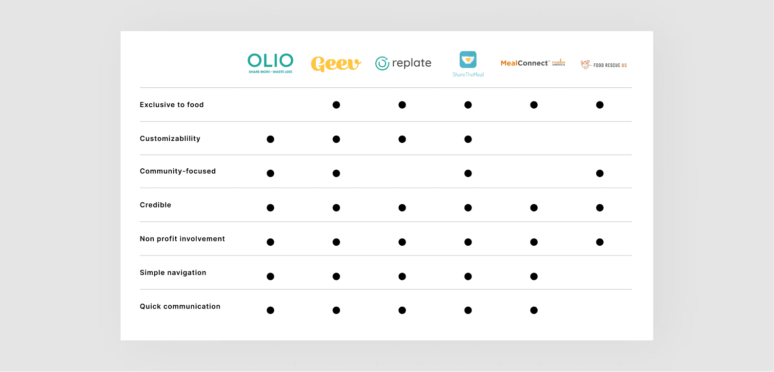 I conducted a competitive audit to familiarize ourselves with the food sharing process. There exists very few national counterparts in India, but a few International apps we focused on. There exist multiple ways in which these competitors provide a better user experience than BiteShare: