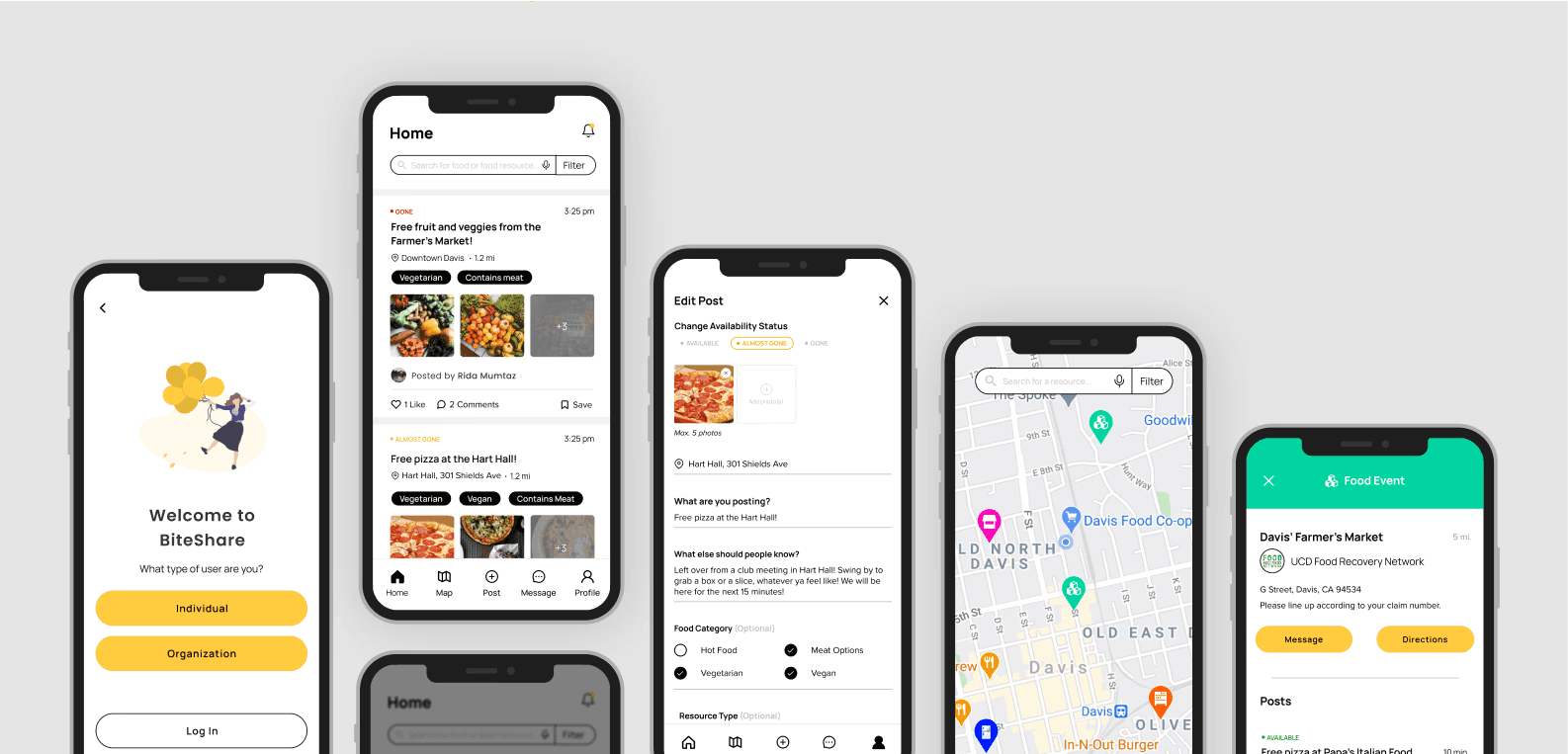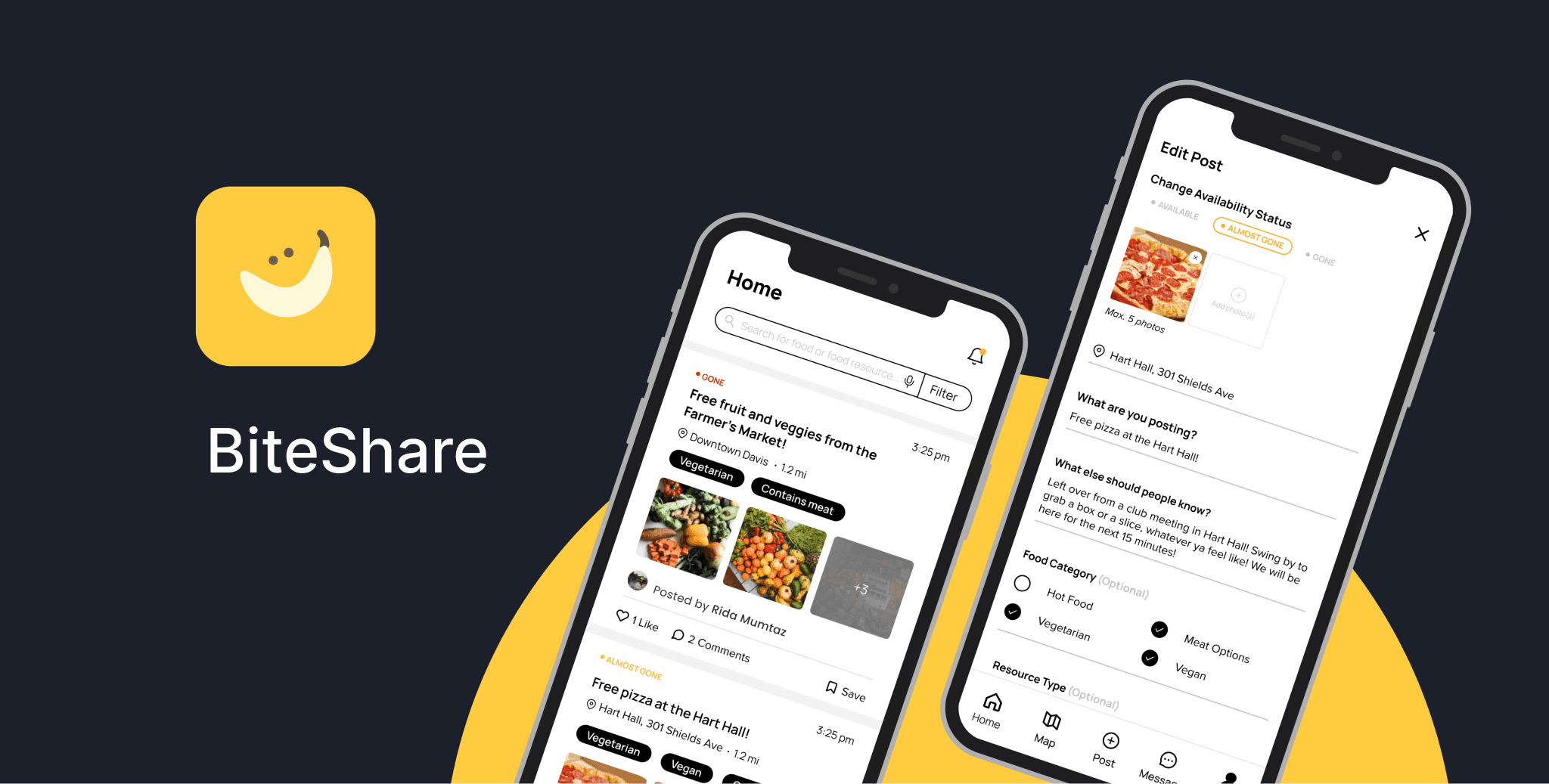 BiteShare is a community-based food sharing platform that leverages technology to reroute excess food to where it can be eaten instead of wasted. It makes it possible for folks to discover free food and share surplus food wherever they are and builds an inclusive, cooperative, and local food ecosystem among neighbors, local restaurants, and non-profits.