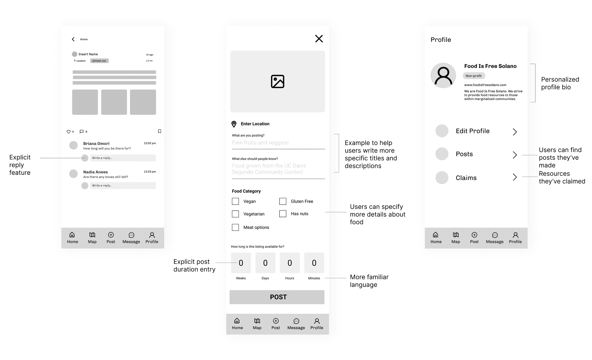 Asking questions helped me deliver a product that considered all users and their unique set of needs and ultimately gave the end-user complete control over how they use the app to accomplish their goals. I am incredibly excited for these designs to be developed and it's rewarding to know that I've contributed to the mission of alleviating food insecurity and cultivating a safe and giving community.